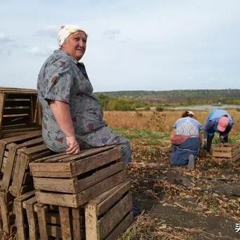 图五,克拉马托尔斯克,防空警报响起时,一些妇女正在田庐收甜菜。