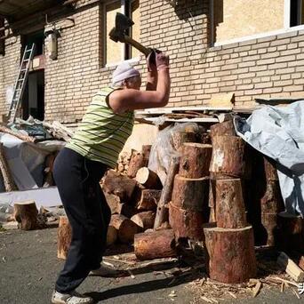 图八,利曼,75 岁的柳德米拉在退休前是又名正经。当今她不得不我方准备木材来取暖。她屋子的玻璃在炮击中受损。