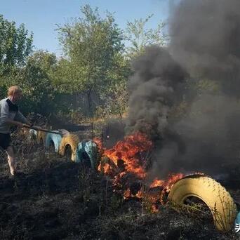 图三,波克罗夫斯克,当地住户试图扑灭用于闭塞学校的烽火的轮胎。