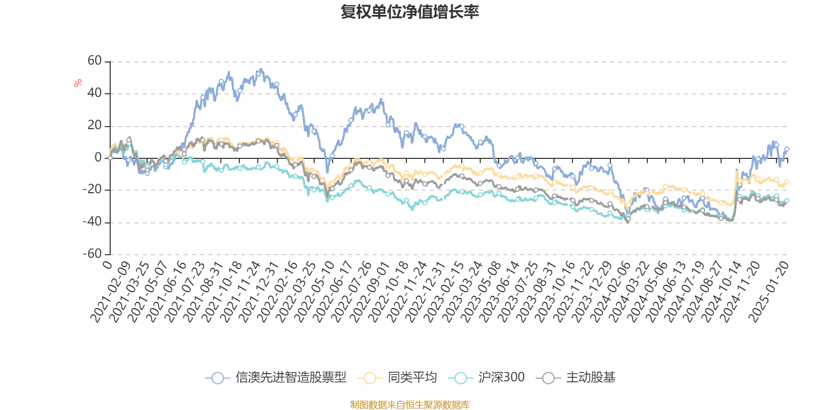 终了1月20日,信澳先进智造股票型近三个月复权单元净值增长率为16.95%,位于同类可比基金1/74;近半年复权单元净值增长率为40.60%,位于同类可比基金1/74;近一年复权单元净值增长率为32.74%,位于同类可比基金5/74;近三年复权单元净值增长率为-21.12%,位于同类可比基金42/73。
