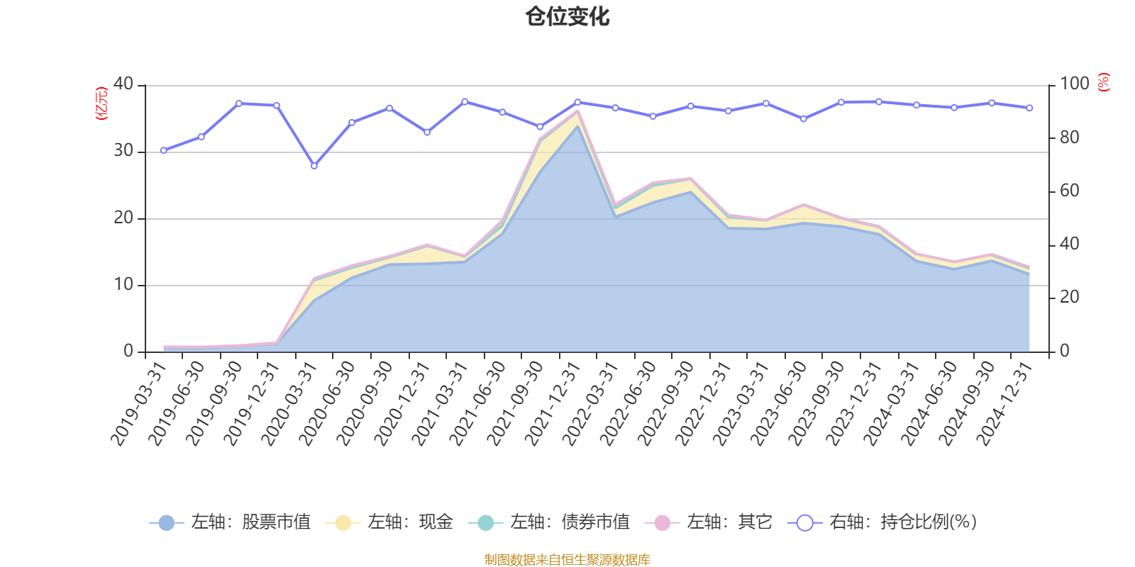据依期论说数据统计,近三年平均股票仓位为91.57%,同类平均为88.67%。2021年一季度末基金达到93.76%的最高仓位,2020年一季度末最低,为69.72%。