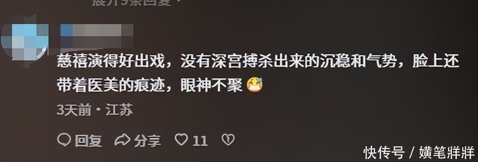 有网友调侃谈:“她一出现,我还认为是哪位亲王的小妾走错了片场,哪有半点执掌朝纲的神态,倒像是青楼出生的交际花。”
